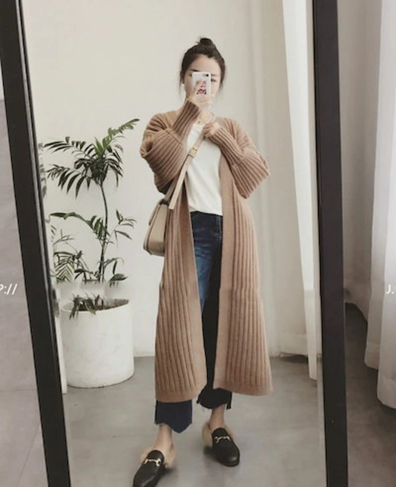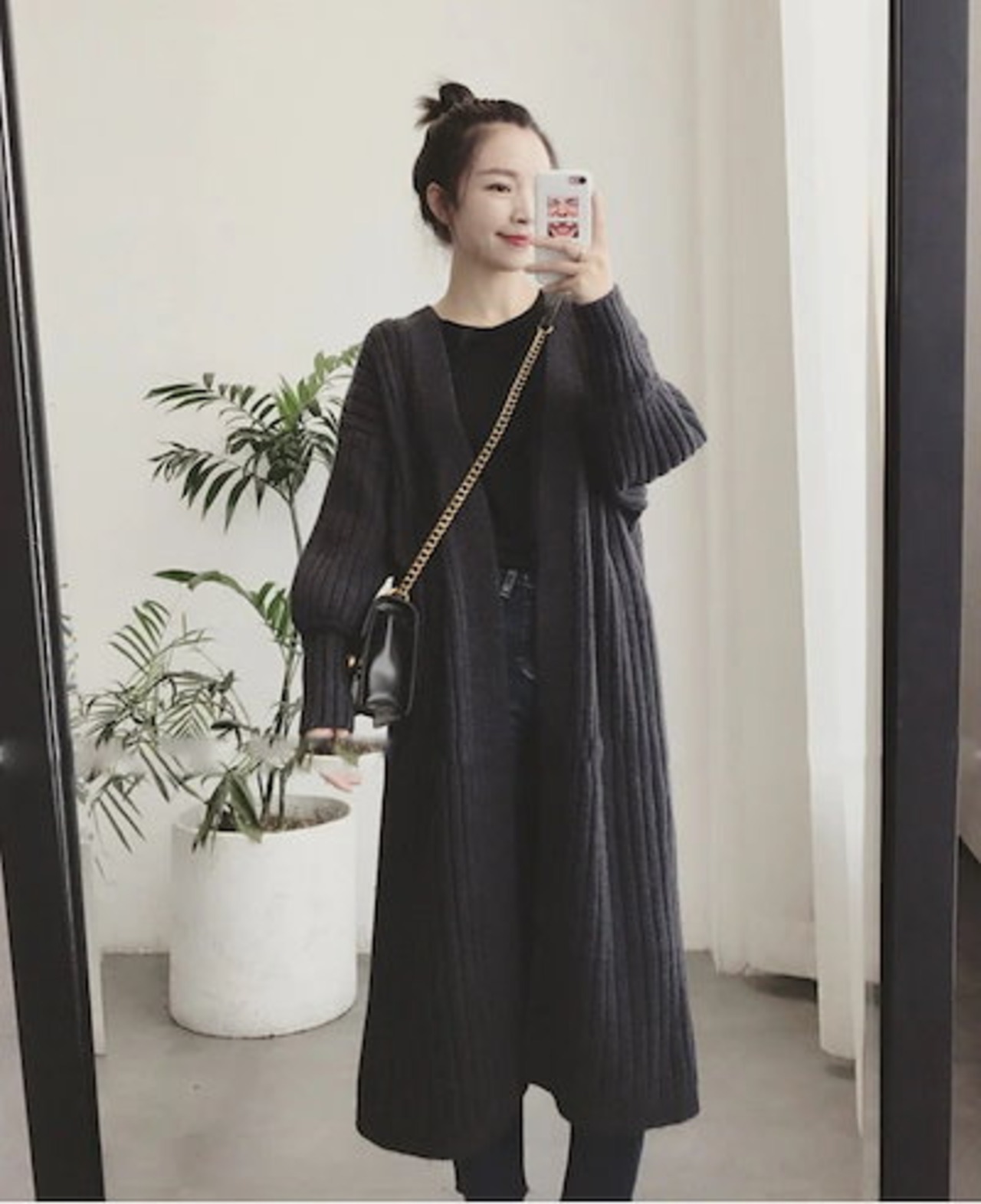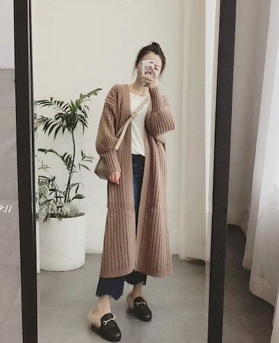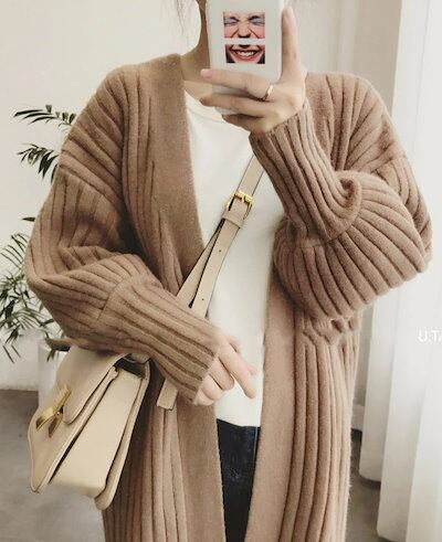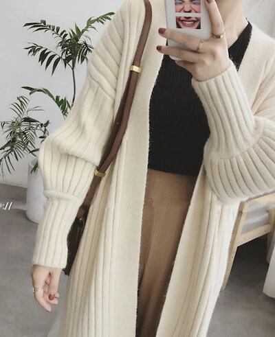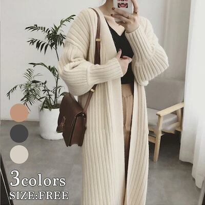 アウター ボリューム ニットカーデ ニット 秋冬 カーディガン ロング カジュアル レディース(メール便) ロング