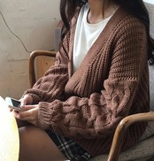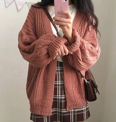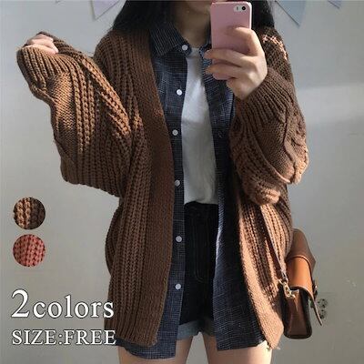 ニット 可愛い トップス ガーリー レディース 秋冬 ざっくり編み カーディガン ゆったり 長袖 暖か