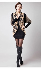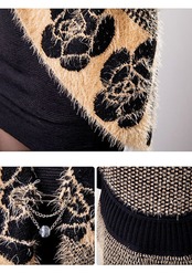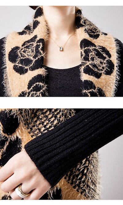 上品 大人 大花柄 レディース ニットセーターレディース 女性用 キャメル 総柄 (メール) ニットカーディガン 暖か レディース あったか 花柄ふ
