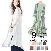 アウター レディース 春服 サマーニット ロングカーディガン 紫外線対策 薄ニット ロング丈 ガウン 薄手 メール便 春夏 無地 シアー UV対策 カーディガン カーデ 七分袖