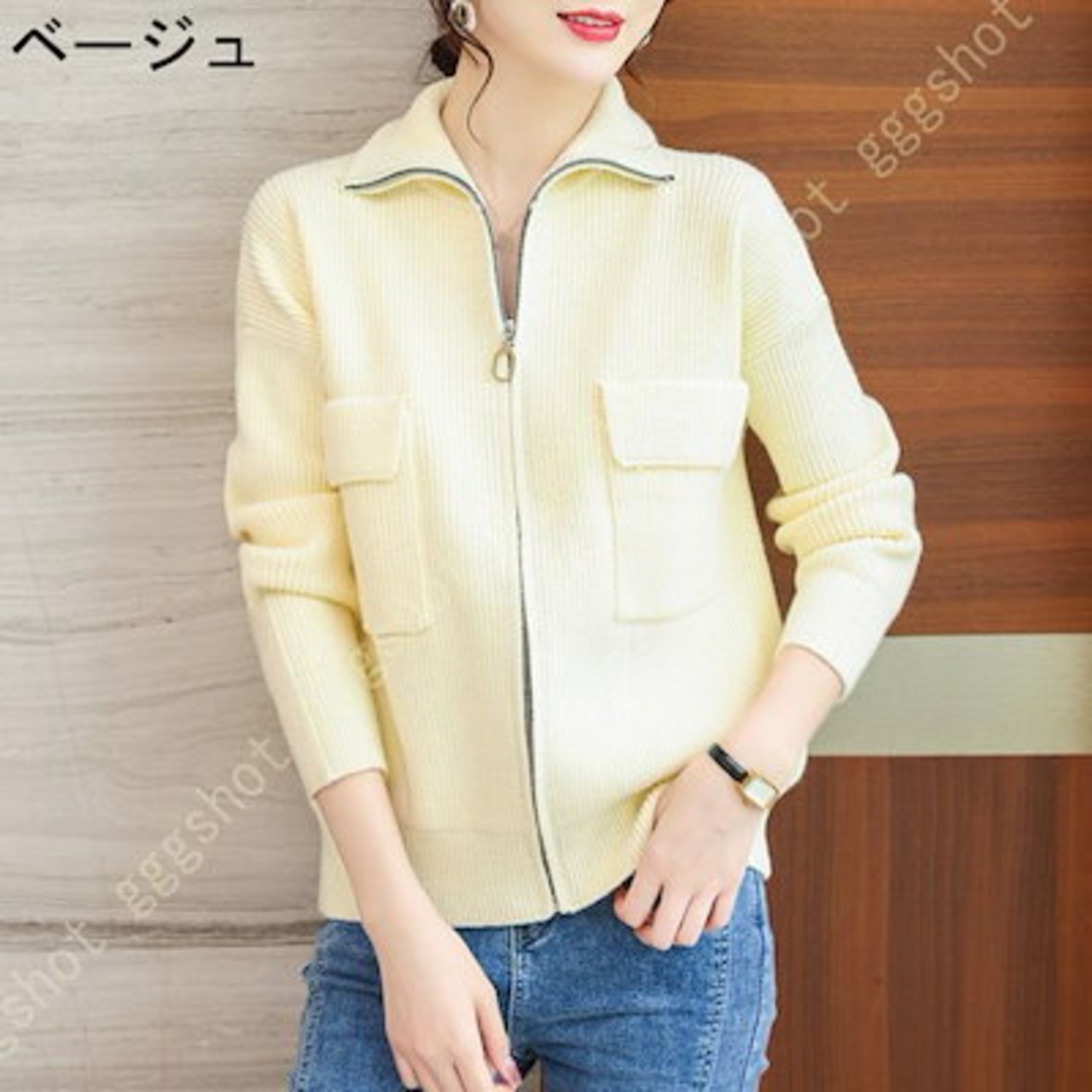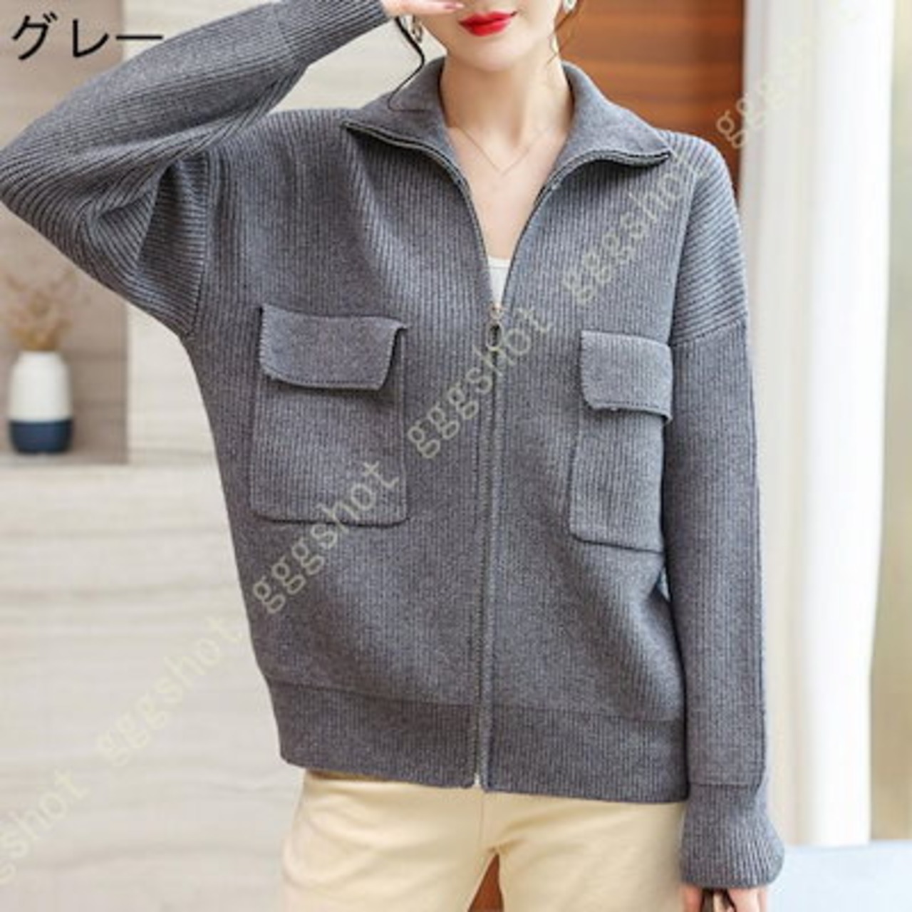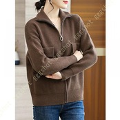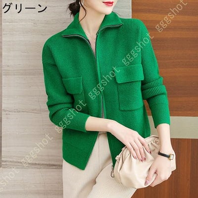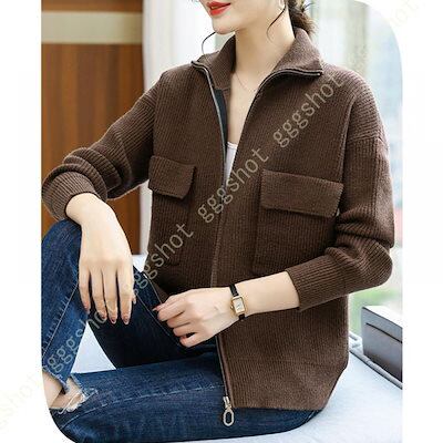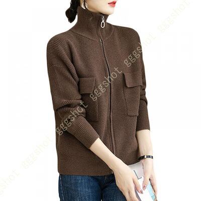 レディース カーディガン ニット セーター 厚手 無地 前開き ゆったり オーバーサイズ 体型カバー 可愛い 長袖 ファスナー付き ハイネック 着痩せ カジュアル