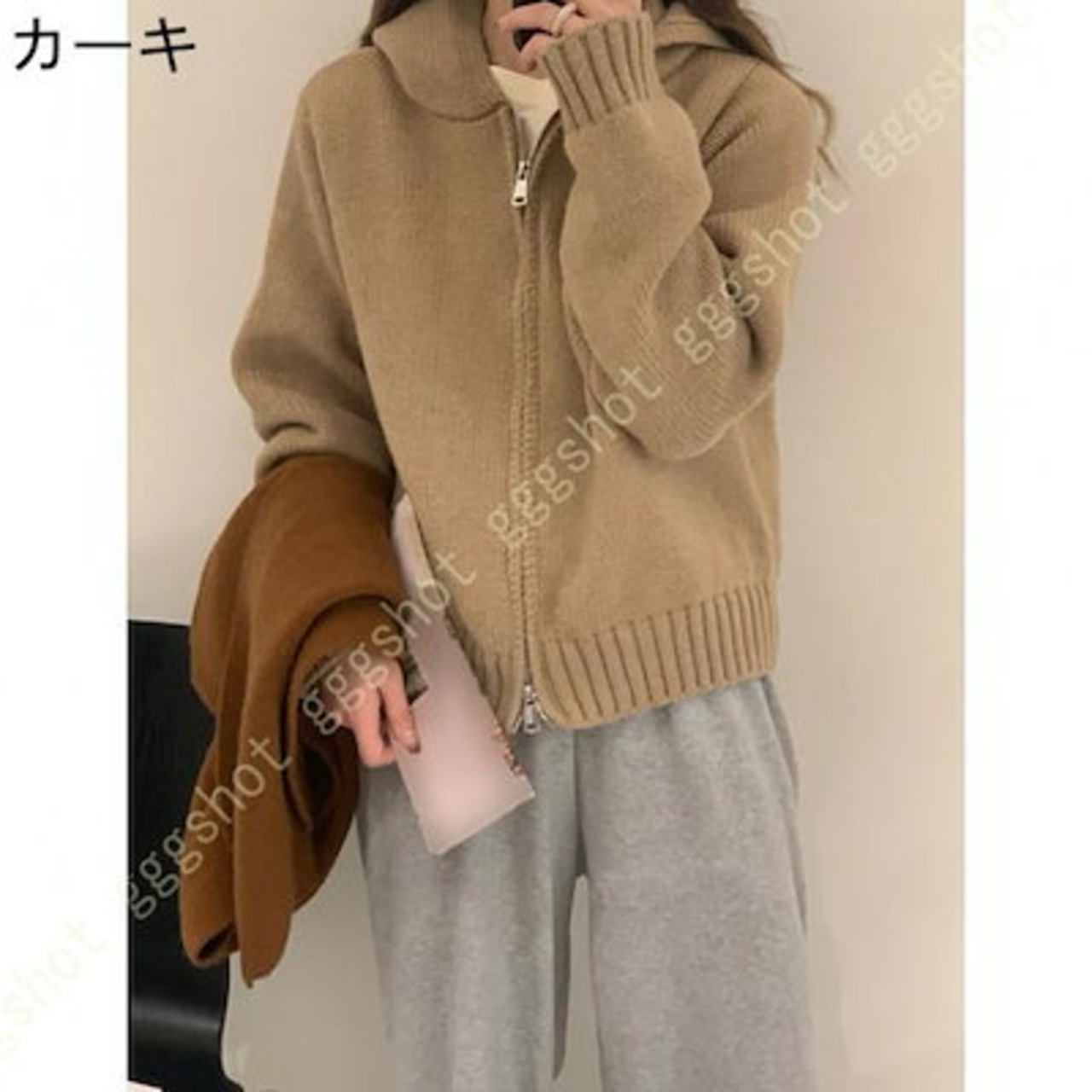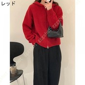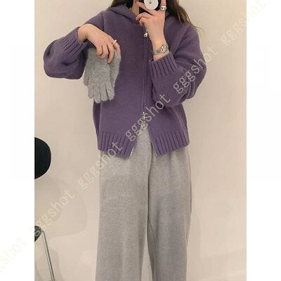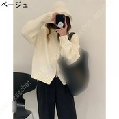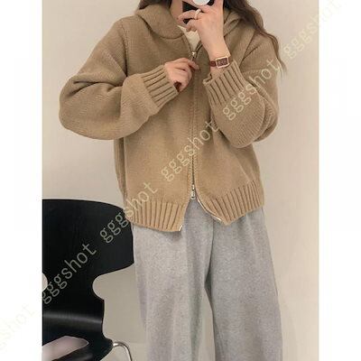 ニットパーカー レディース 秋冬 春秋 カーディガン フード付き ゆったり スクール 学園風 可愛い 前開き 無地 厚手 暖かい 通学 ジップアップ 女性 トップス
