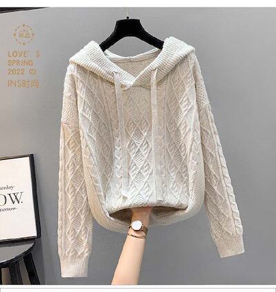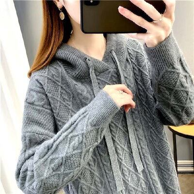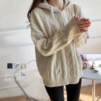 ニット パーカー レディース 春 秋 ケーブル編み フード付き ニットパーカー セーター 長袖 パーカー ゆったり フェミニン 着回し シンプル カジュアル 体型カバー 柔らかい お洒落 厚手 防