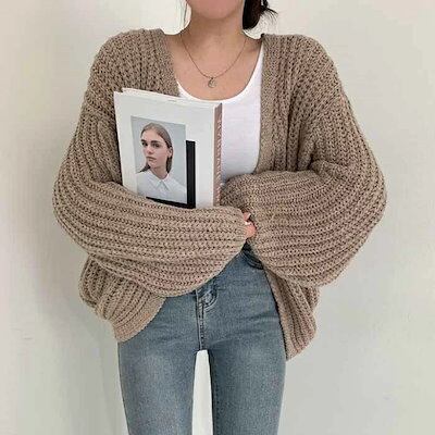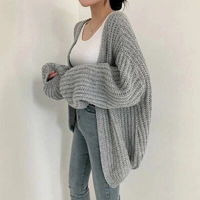 ニットカーディガン カーディガン ニット ざっくり編み カーデ ロングカーディガン コート レディース アウター ニットセーター とろみ ショート ゆったり 柔らか カジュアル 春 秋 通勤 普段着