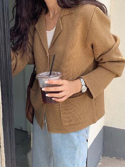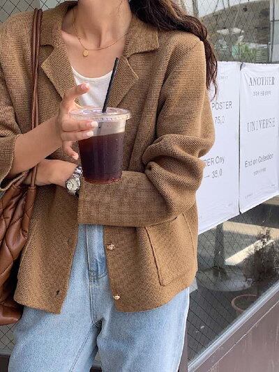 テーラードジャケット ニット ジャケット レディース カーデ 春 秋 冬 羽織り カーデ ボタン ニット カーディガン きれいめ オフィス カジュアル トップス ニット セーター シンプル ゆったり