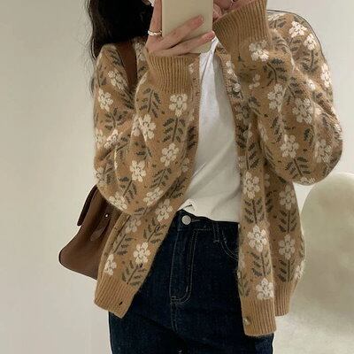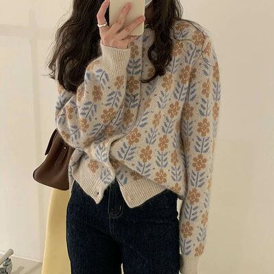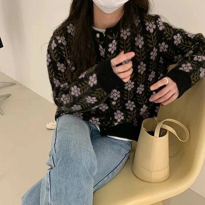 ニットセーター レディース 秋 冬 カーディガン 花柄 ニット カーデ コート アウター とろみ ショート ゆったり 柔らか カジュアル 体型カバー 大きいサイズ お洒落 春 秋 冬 通勤 普段着