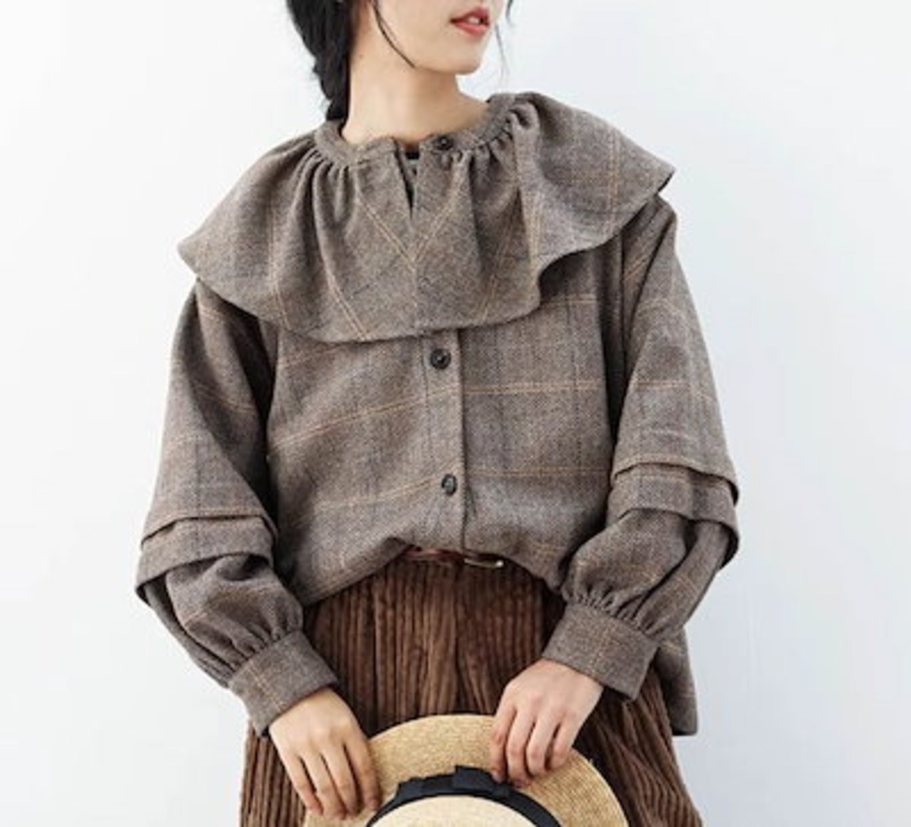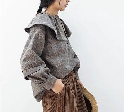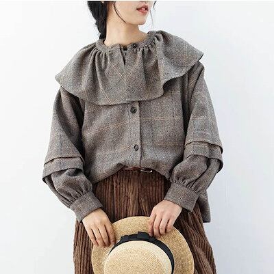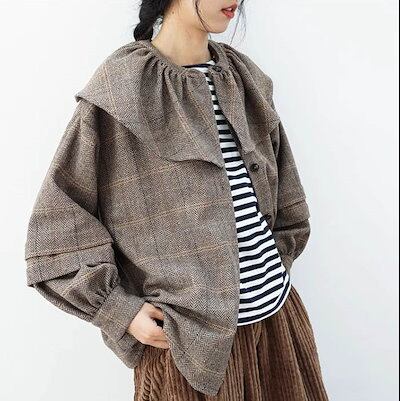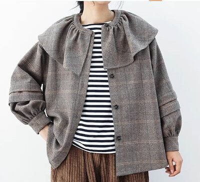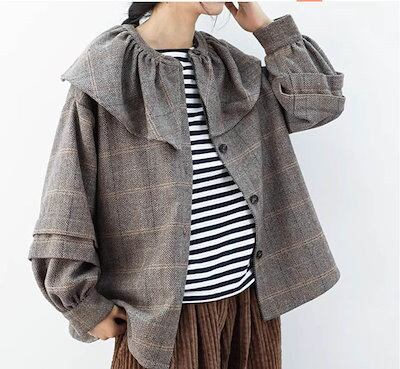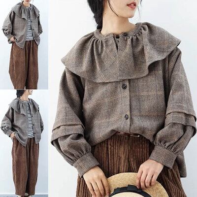 シャツジャケット ビッグカラー レディース チェック 春 秋 冬 レイヤード風 重ねコート アウター セーター とろみ ショート ゆったり 柔らか カジュアル 体型カバー 大きいサイズ お洒落
