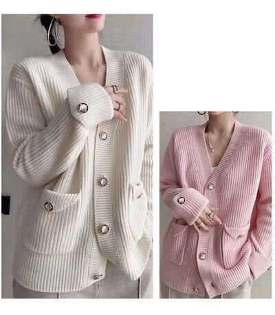 カーディガン レディース 秋 冬 長袖 ニット ニットカーディガン 厚手 セーター さっと羽織れる ニット羽織 ゆったり フェミニン 着回し シンプル カジュアル 体型カバー 柔らかい お洒落 上