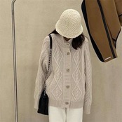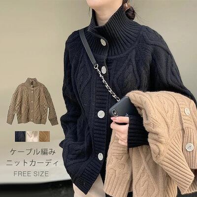 カーディガン レディース ニット セーター 秋冬 ケーブル編み カーディガン 長袖 ニットカーディガン さっと羽織れる ニット 羽織 ゆったり フェミニン 着回し シンプル カジュアル 体型カバー 柔