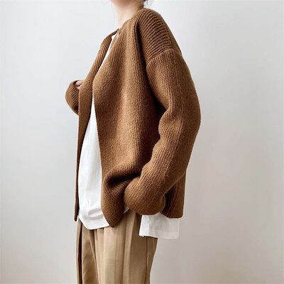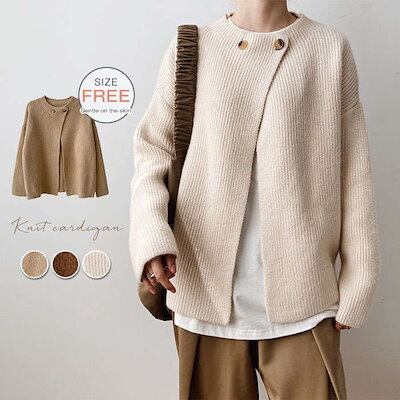 ニットカーディガン カーディガン レディース 秋 冬 長袖 ニット 厚手 セーター さっと羽織れる ニット羽織 ゆったり フェミニン 着回し シンプル カジュアル 体型カバー 柔らかい お洒落