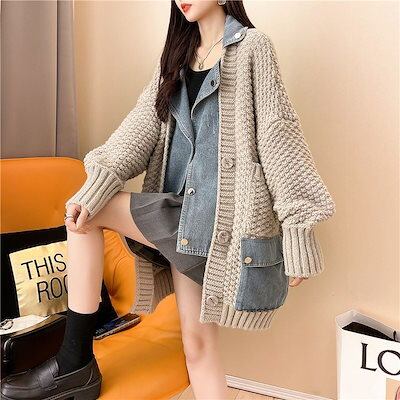 レディース コート AWアウター ロングコート ダウンジャケット ニットカーディガン デニム 裏起毛 アウター 切り替え ジャケット ダブルブレスト厚手 ダウンジャケット 人気なリプニット 冬アウター