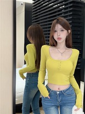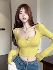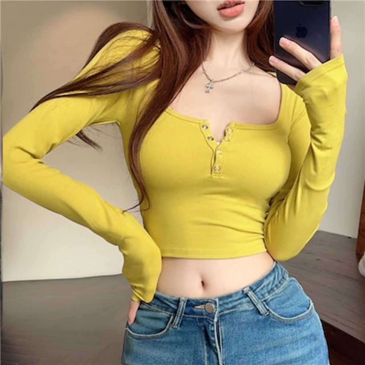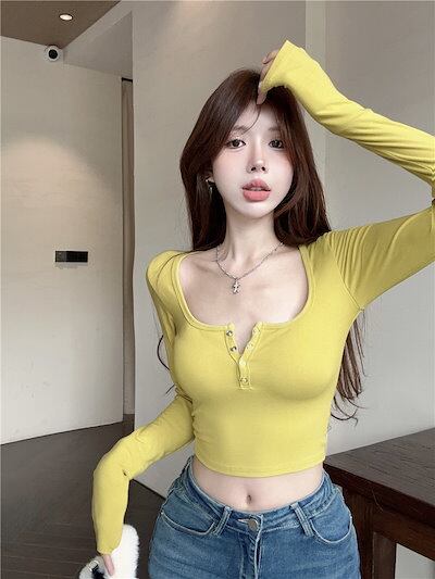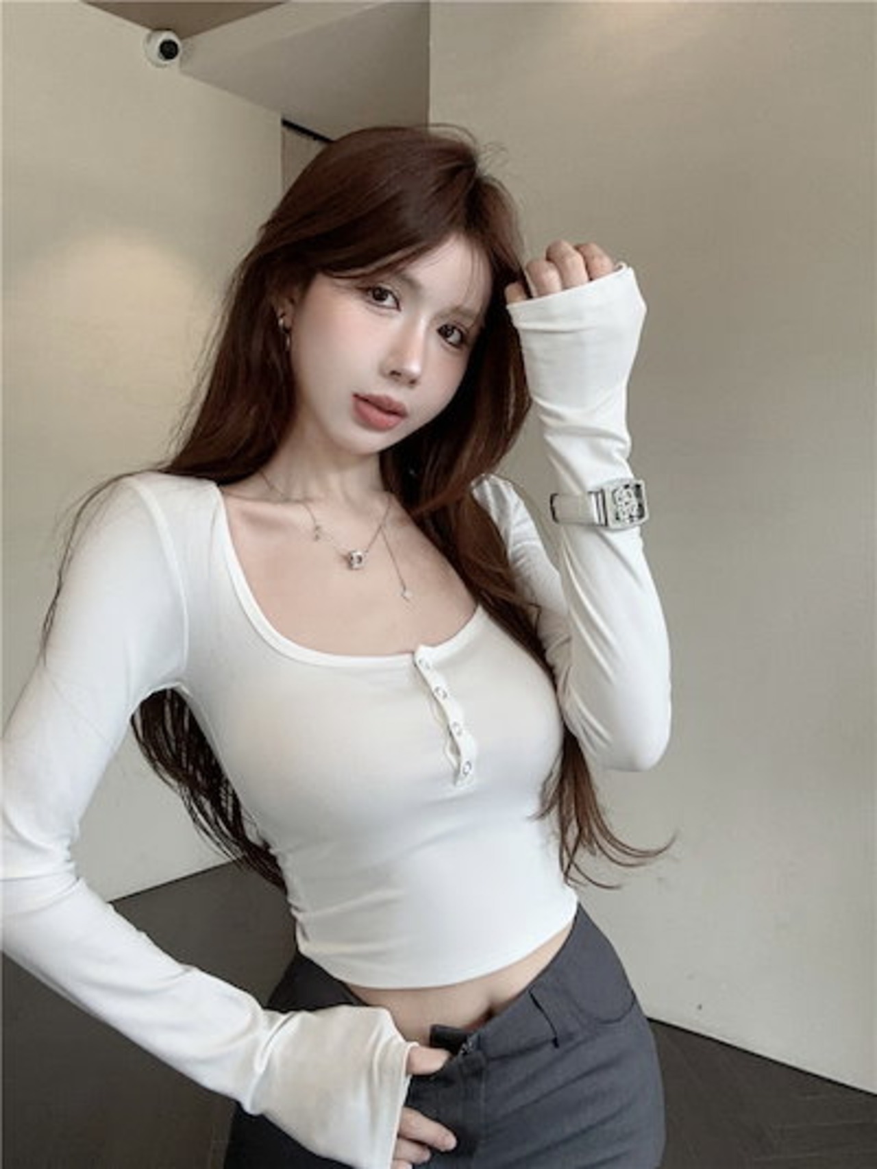 2024春夏 トップス 長袖 可愛い おしゃれ タイトフィット 韓国カットソー ラウンドカラー 重ね着丈 ネックスリーブ 女っぽ レディース Tファッション系 フェミニン きれいめ 色っぽ プリント