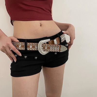 Q10限定 激?れ人気商品 ファッション ベルト 調整可能 y2kアメリカ ウォータドリル ベルト ホワイト