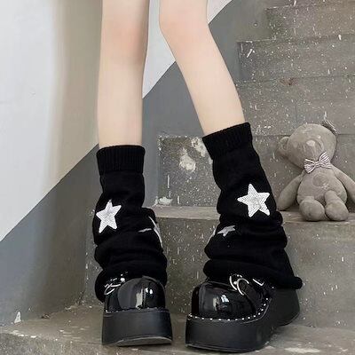 激安 jk ロリータy2k サブカル ブラック ニット レッグカバー 靴下 レディース ソックス