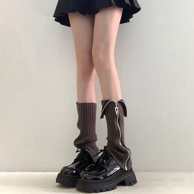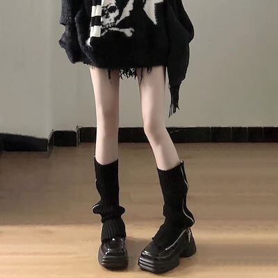 激安 jk ロリータ ファスナー y2k 原宿 サブカル ギャル ニット レッグカバー 靴下 レディース ソックス メイラード