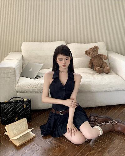 2024春夏ワンピース ミニ丈 キャミソール ネック ゆったり 夏 カラフル 韓国ファッション レディース おしゃれ付き かわいい ガーリー キュート 甘め カジュアル お出かけフレンチ