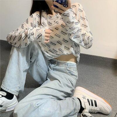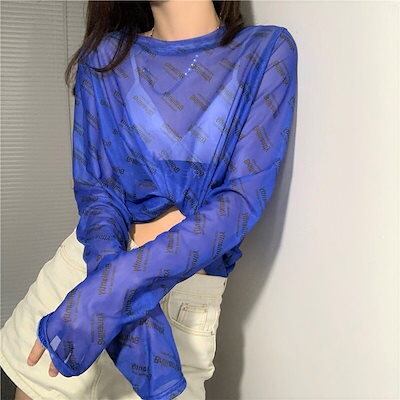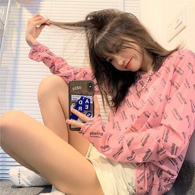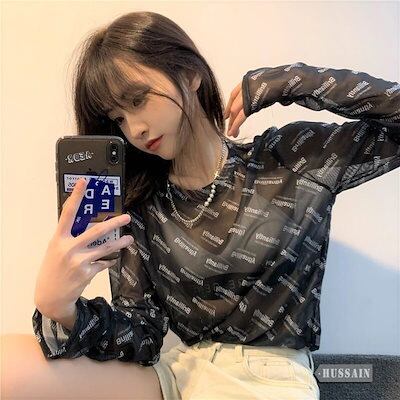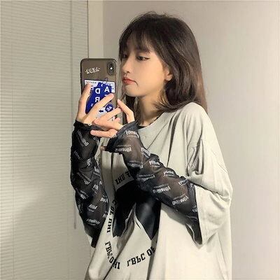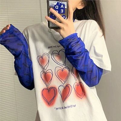 透けアイテム を楽しむ 透明感UP tシャツ ファッション 韓国 トップス デザイン カットソー イラストエンジェル 長袖 ロングプリント カジュアル 夏春 秋