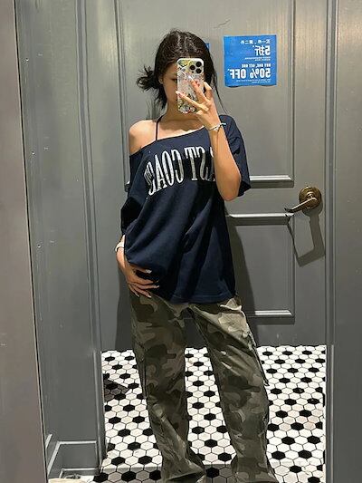 2024 春夏 甘い 2wayトップス Tシャツ ラウンドネック丈 休日 フレンチ 韓国 半袖ブラウス ファッション系 タイト スリムフィット丈短め ショート レディースへそ出し休日おしゃれ T