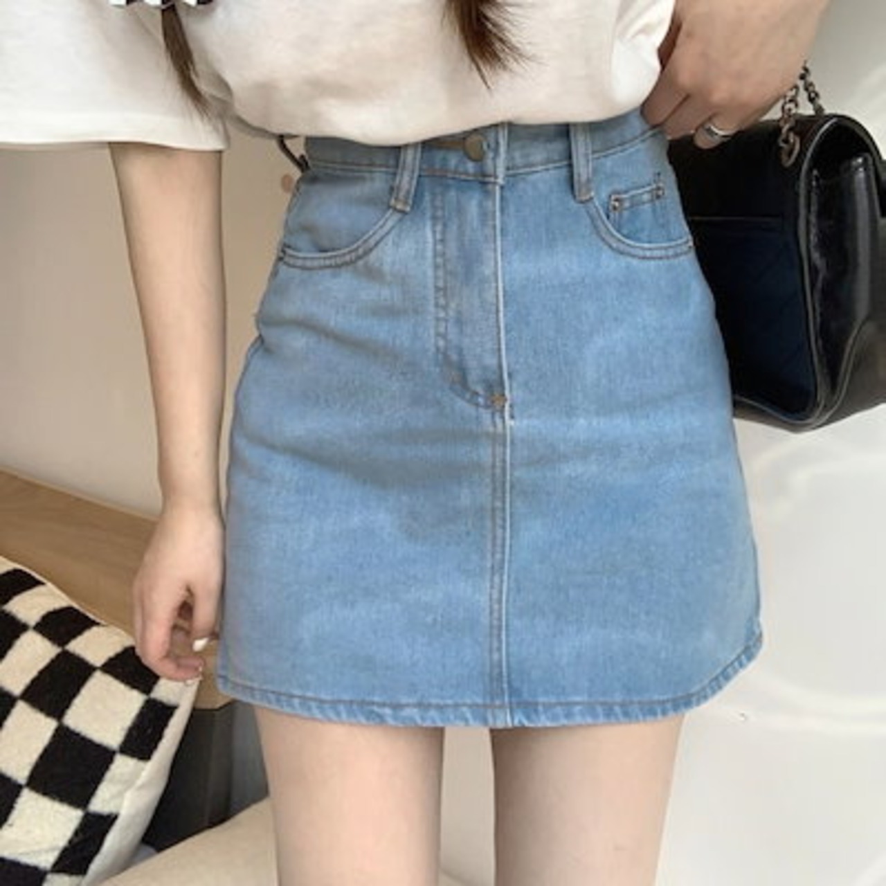 2024 春夏スカート デニム ミニ丈 Aライン 台形 ハイウエスト 脚長効果 美脚効果 細見え 春 かわいい カジュアル 韓国ファッション レディース お出かけ