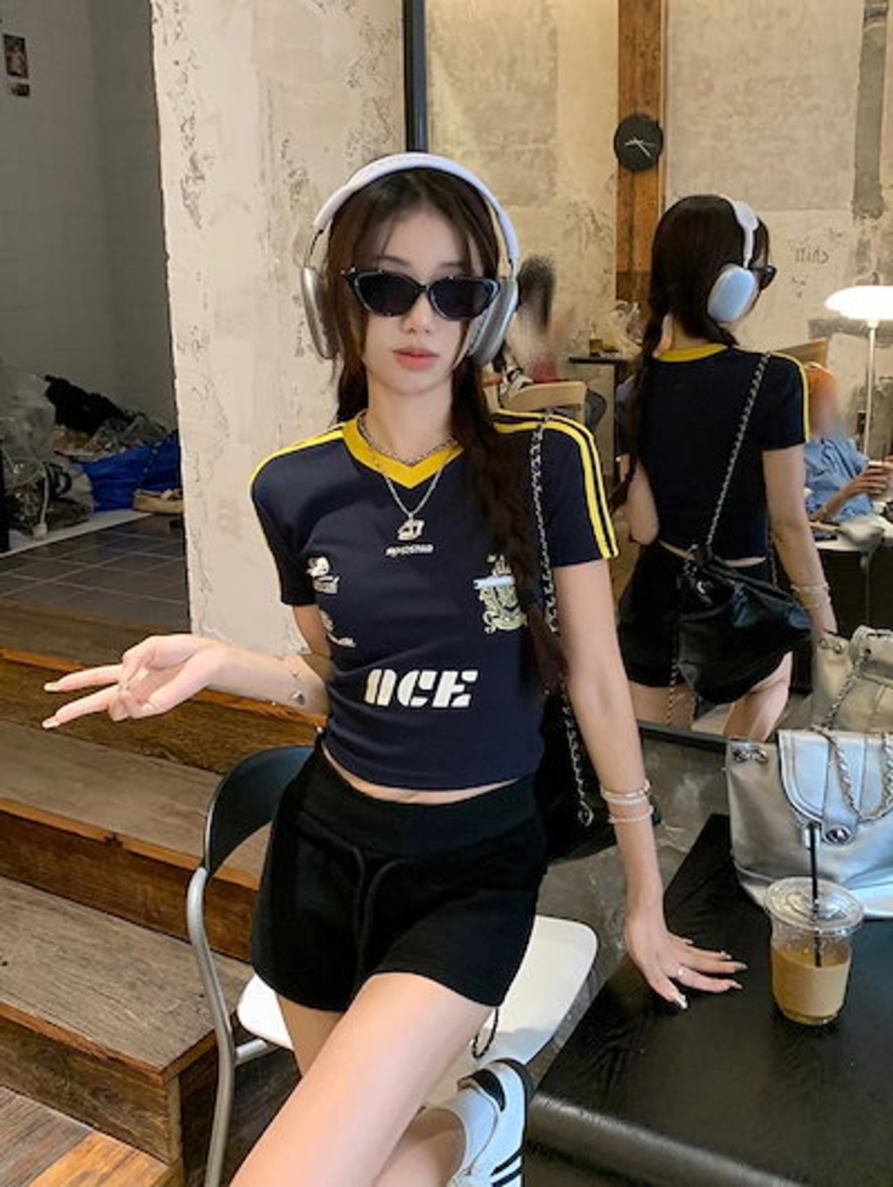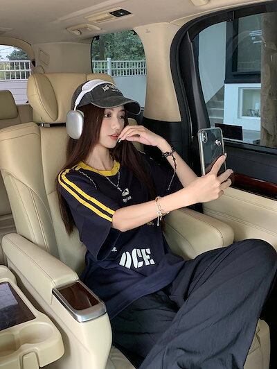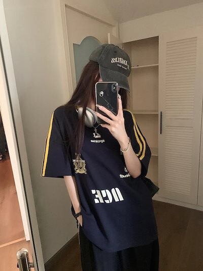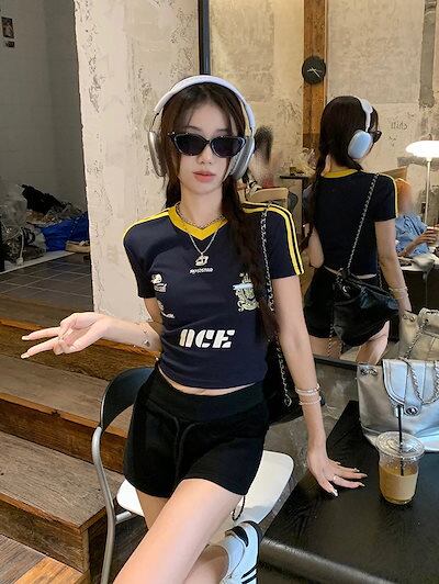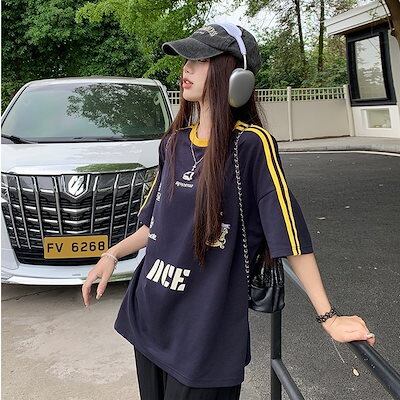 2024夏 韓国可愛い風トップス Tシャツ ロング丈 ファッション 半袖スリムフィット サイド ペイントシルエット ゆったり 休日レディースサイズ韓国系ネック黑おしゃれ カジュアル メンズライク T