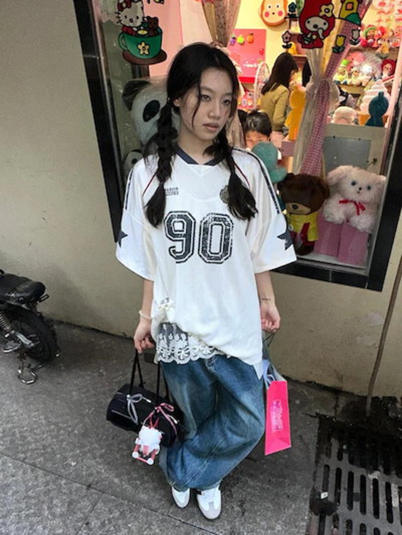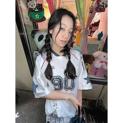 2024夏韓国可愛い風トップス Tシャツ ロング丈 ファッション 半袖スリムフィット サイド ペイントシルエット ゆったり 休日レディースサイズ韓国系ネック おしゃれ カジュアル メンズライク T