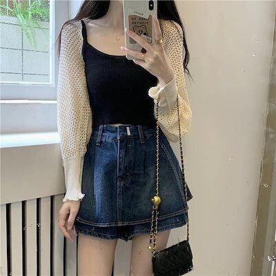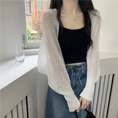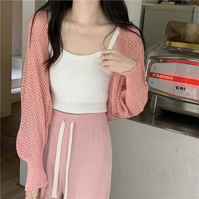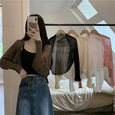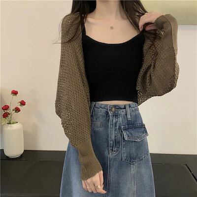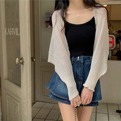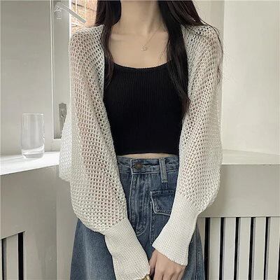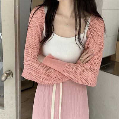 ニット カーディガン 長袖 サイズ ニット大人 トップス シルエット羽織り 雰囲気 カジュアル フェミニンファッションきれいめ フレンチドルマンスリーブメガ割夏 春 秋韓国 レディース