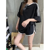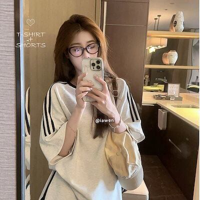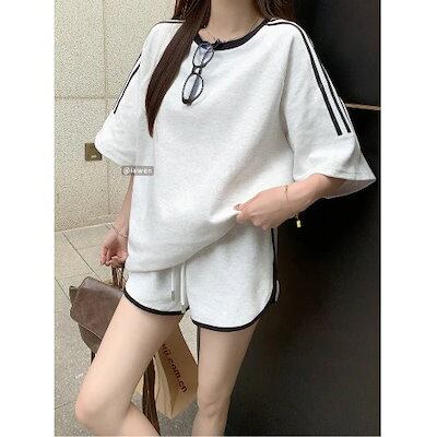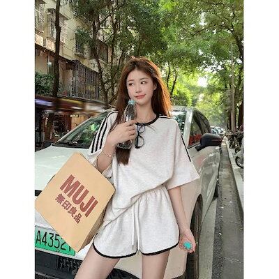 2024 夏 韓国 上下2点セット トップス 半袖 お出かけ 羽織り ショート丈ファッション コーデ ミニ丈ボトムス サイド系 ゆったりレディースシルエットワイドサイズお出かけトラック