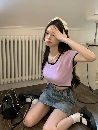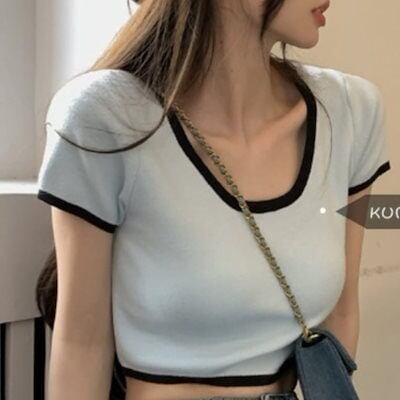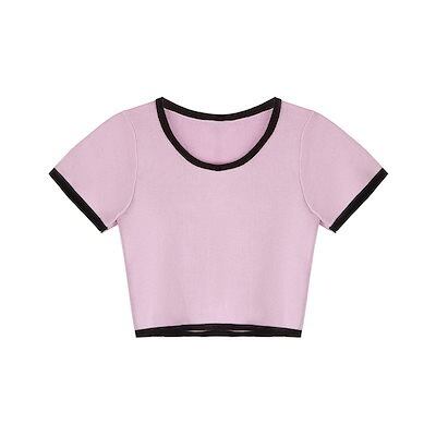 2024 春夏 甘い トップス Tシャツ ラウンドネック丈 休日 フレンチ 韓国系コーデ ブラウス ファッション タイト スリムフィット丈短め ショート レディース 休日 おしゃれ T