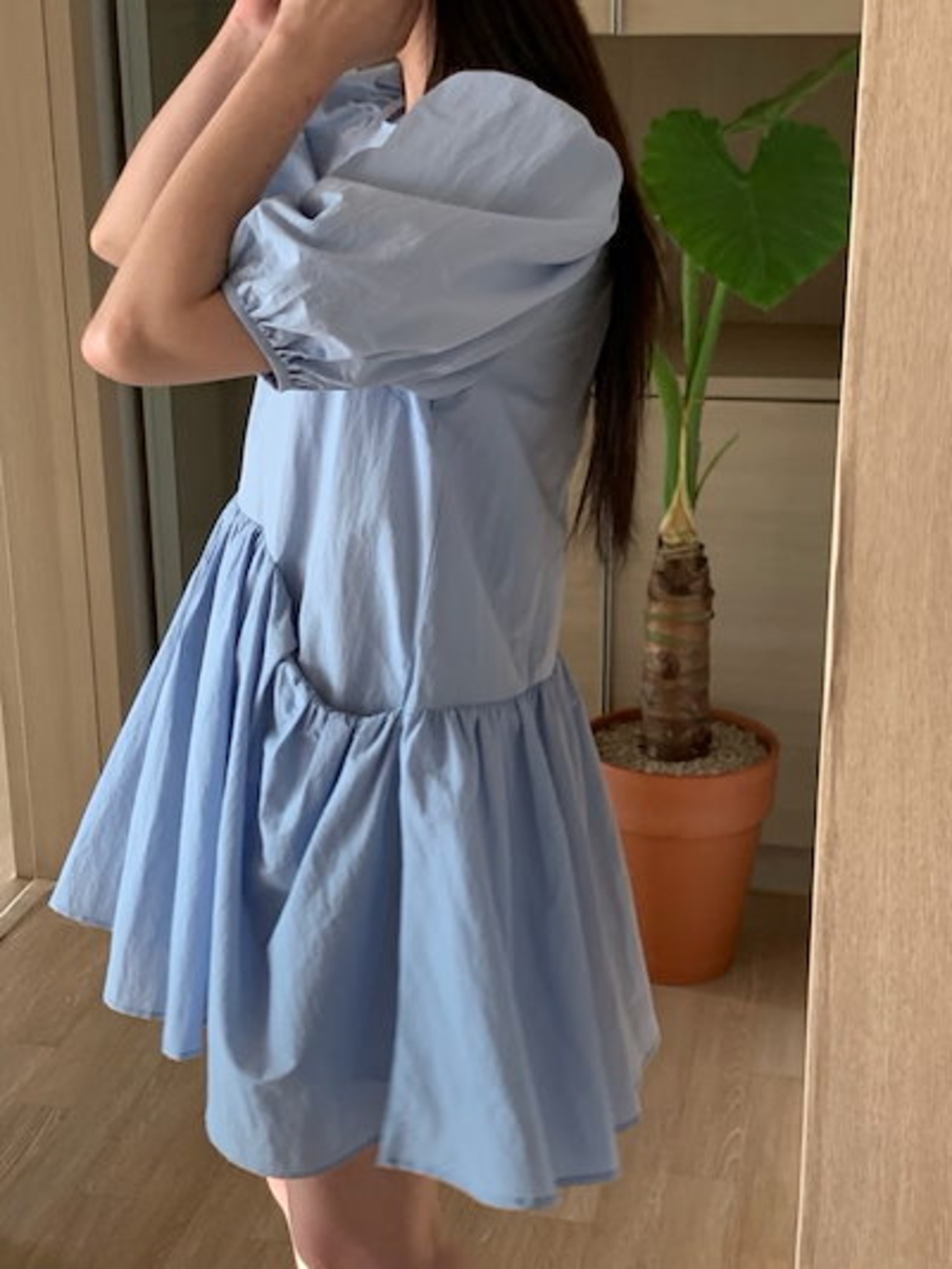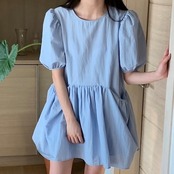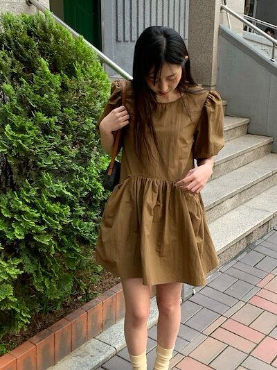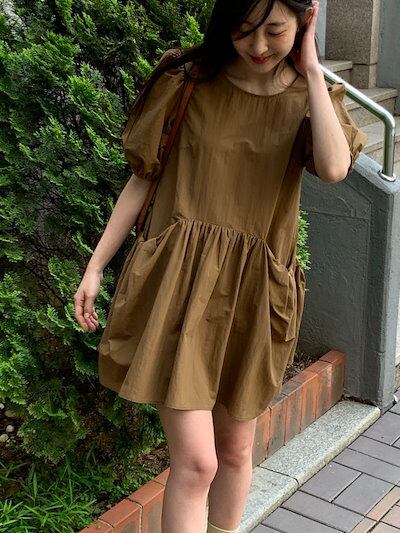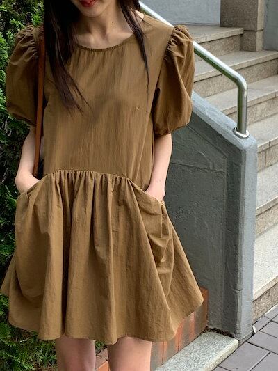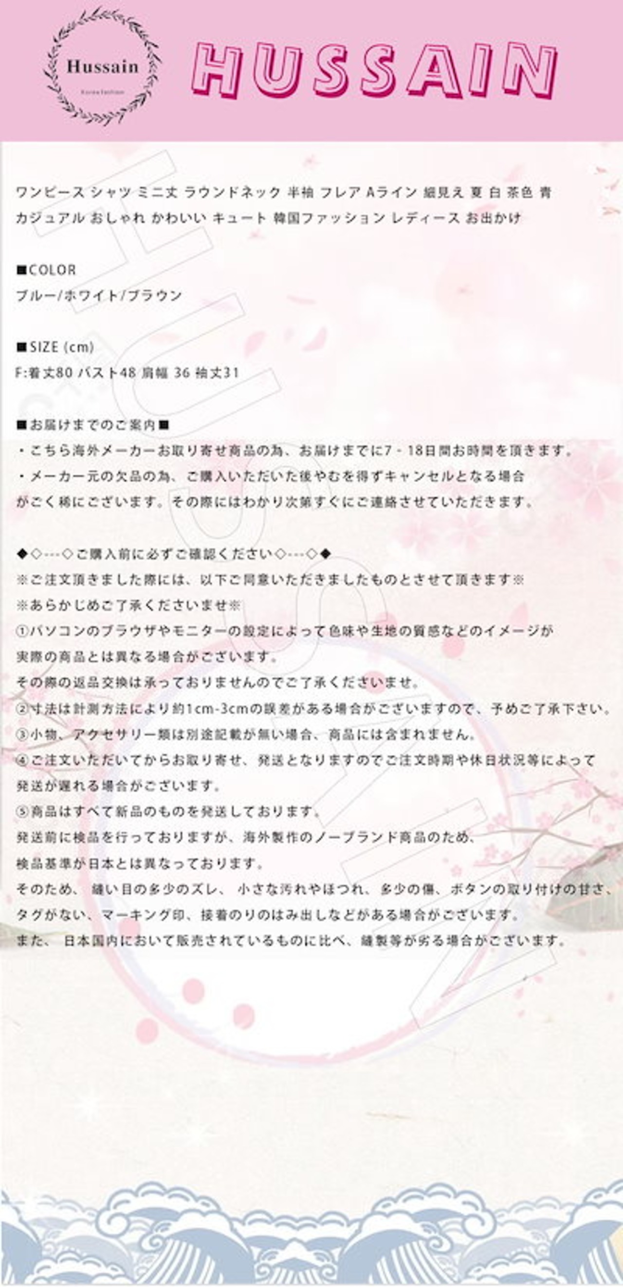 2024 春夏ワンピース シャツ ミニ丈 ラウンドネック 半袖 フレア Aライン 細見え 夏 白 茶色 青 カジュアル おしゃれ かわいい キュート 韓国ファッション レディース お出かけ