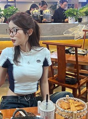 2024 春夏トップス プリント半袖 Tシャツ 韓国 ラウンドネック スリム 可愛い風へそ出し ショート おしゃれスリーブ カジュアルサイドコーデ丈 ファッション系レディースフレンチお出かけ T