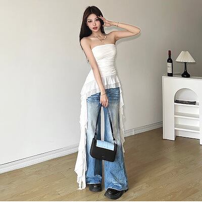 2024 春夏トップス 半袖 Tシャツ 韓国 レイヤード風 長袖 着痩せ スリム かわいい セクシー ラウンドネック おしゃれスリーブ カジュアルコーデ丈 ファッション系レディース お出かけ T