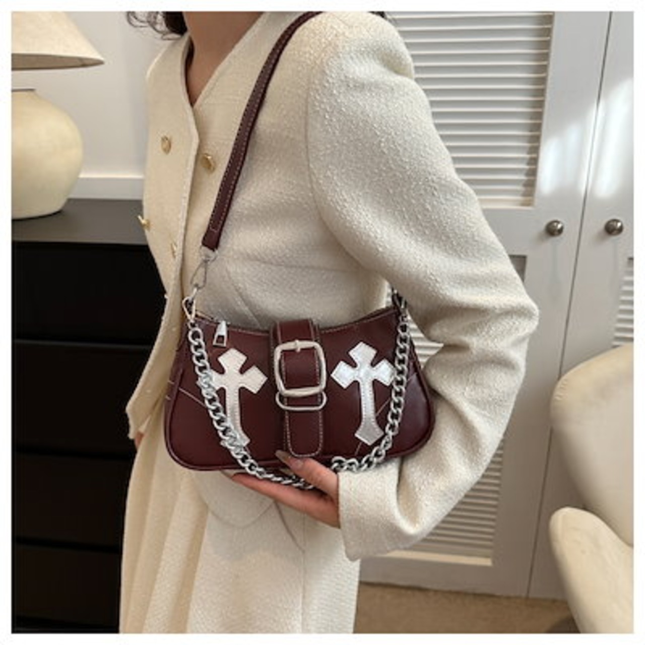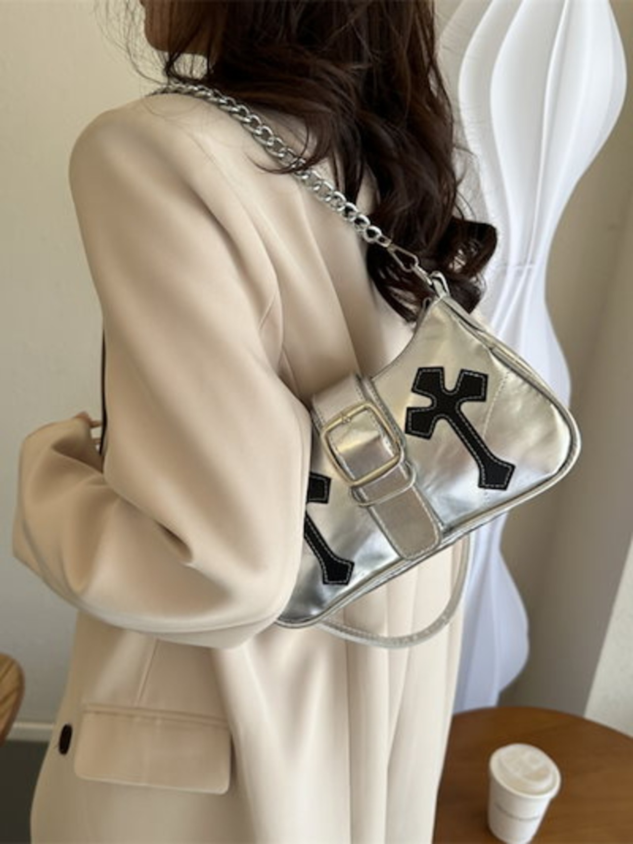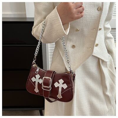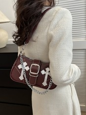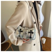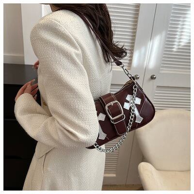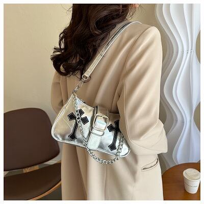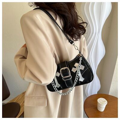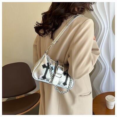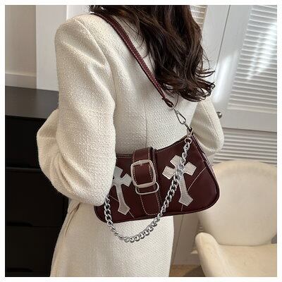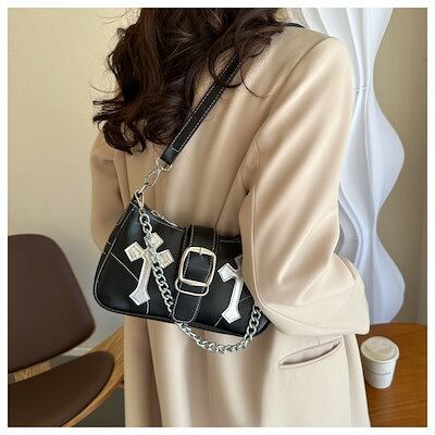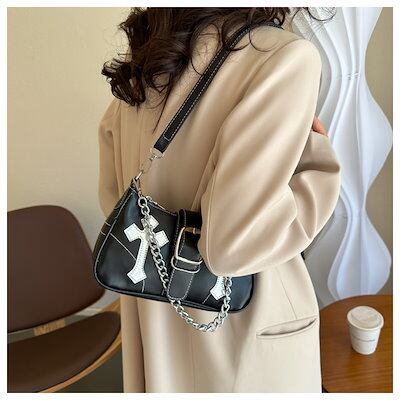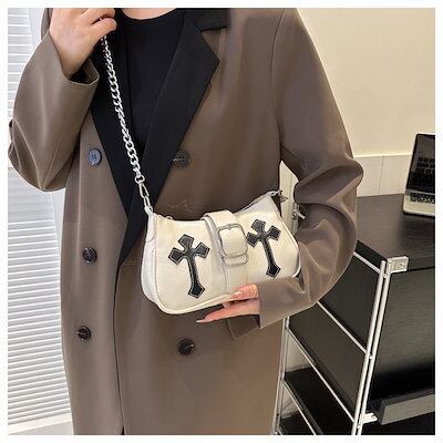 2024春夏 甘辛MIX ショルダーバッグ かわいい デザイン カバン フェイクレザー ハンドバッグ 肩掛け付き カジュアル きれいめファッション系 大人っぽストリート コーデレディース