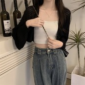 2024 春夏 ショート丈 薄手 カーディガン トップス 長袖 紫外線対策 UV対策 羽織り加工 きれいめ ライトニット オフィス OLネックカジュアルフレンチフェミニンファッション韓国レディース