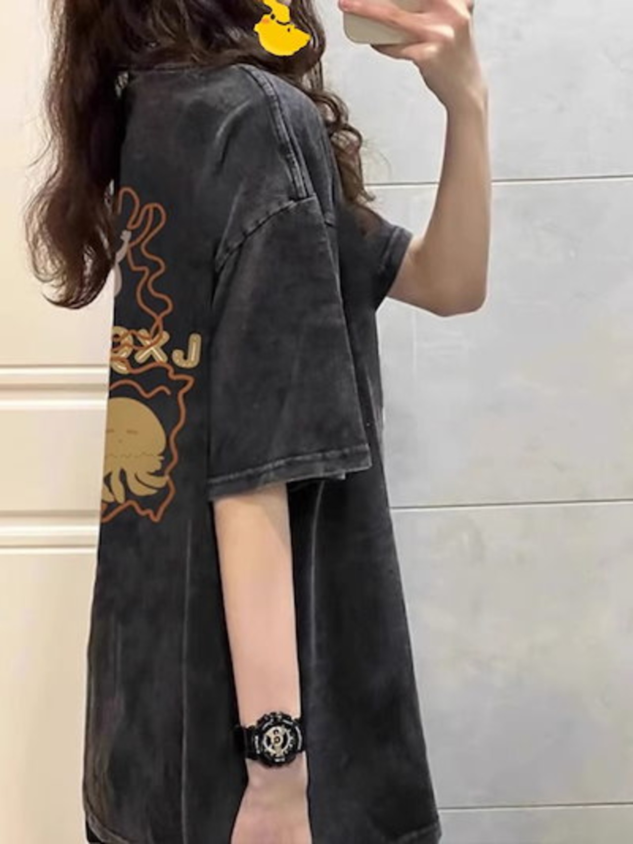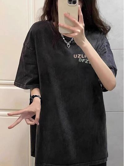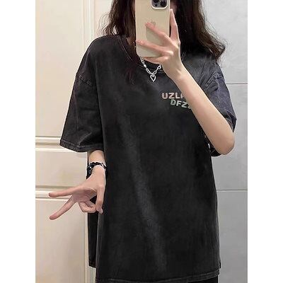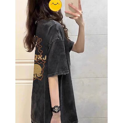 2024 春夏 可愛いトップス Tシャツ ラウンドネック ゆったり シルエット 丈長め 夏 赤 白 かわいい カジュアルサイズ加工風 韓国系ファッション レディース お出かけT