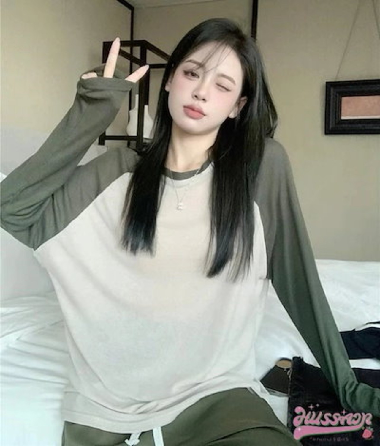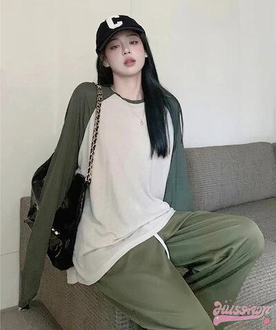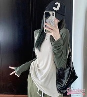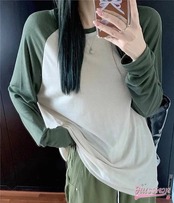2024春夏 トップス Tシャツ ラグラン 長袖 丈長め ラウンドネックシルエットゆったり リラックス シンプル かわいい カジュアル韓国ファッションスリーブサイズお出かけT