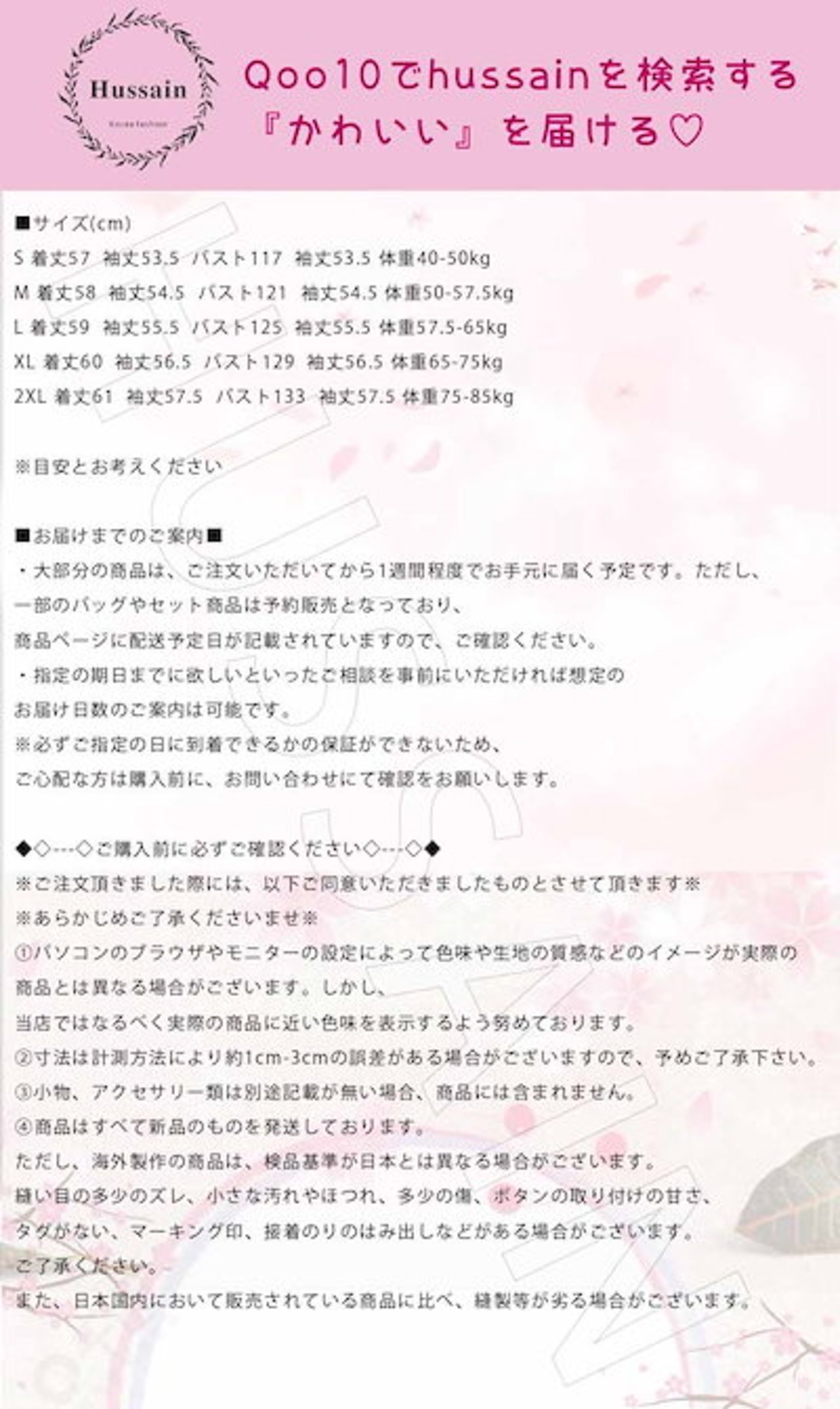 サイズ交換、お色交換などの返品、交換は行っておりませんので十分にお確かめの上、ご購入お願い致します。