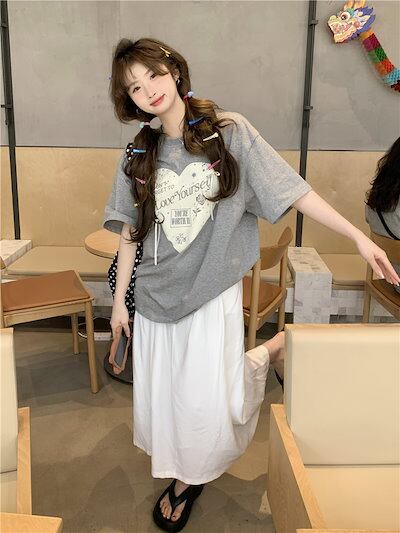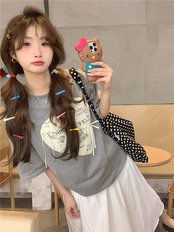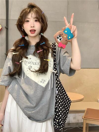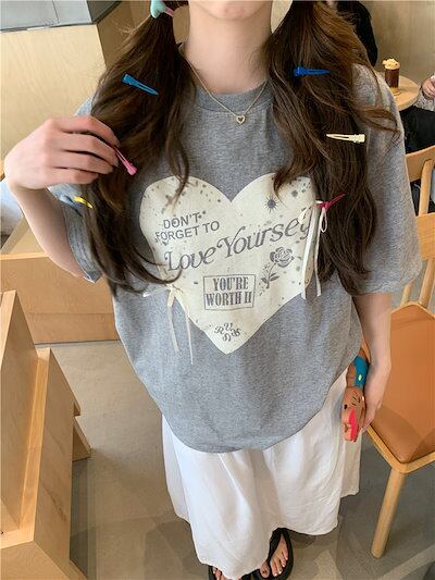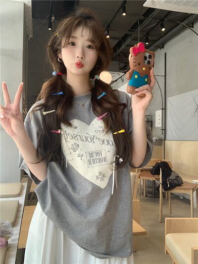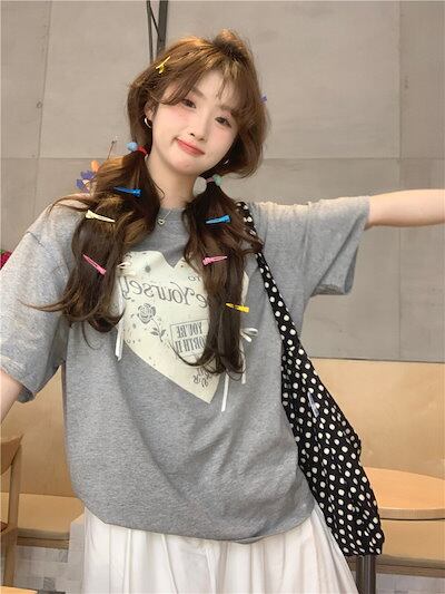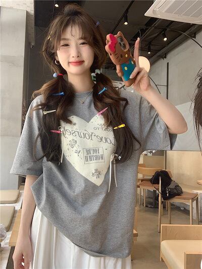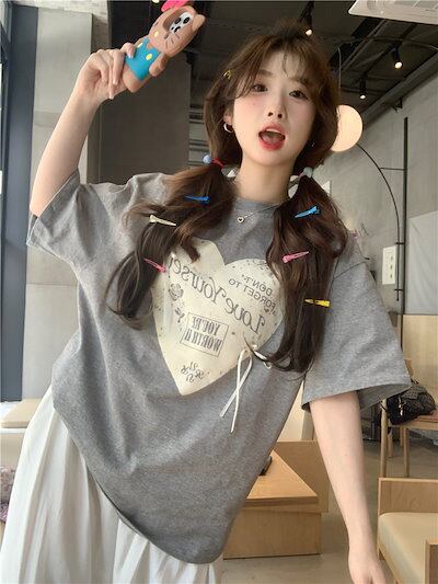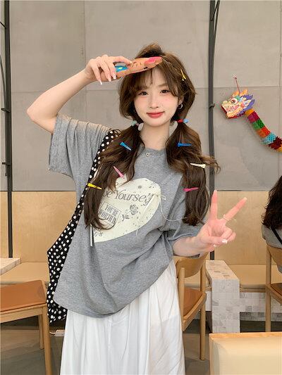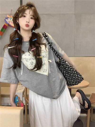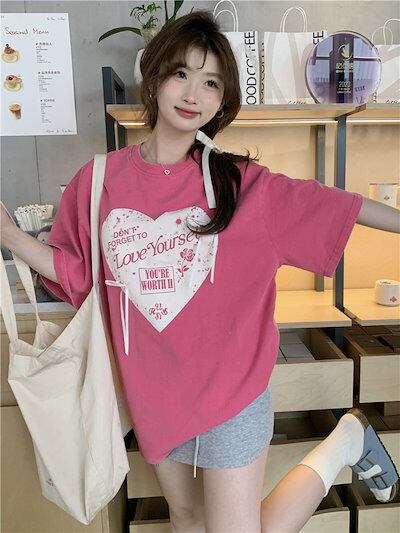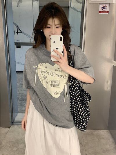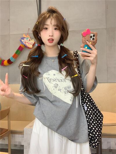 2024 春夏 甘い トップス Tシャツ ラウンドネック 休日 ファッション スリムフィット加工風丈短め ショートサイズ レディース へそ出しシルエット 韓国系 休日 おしゃれ T