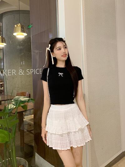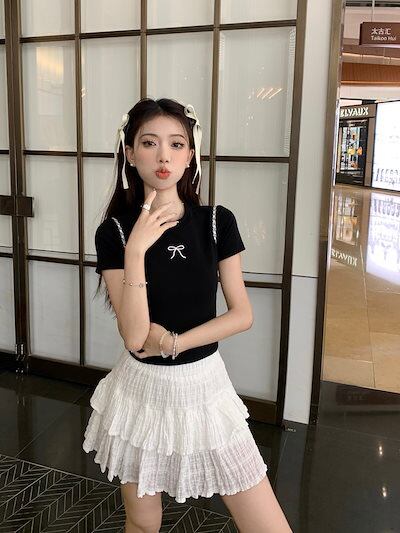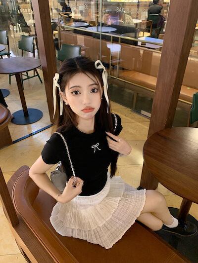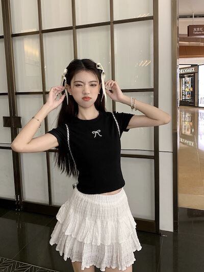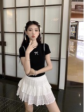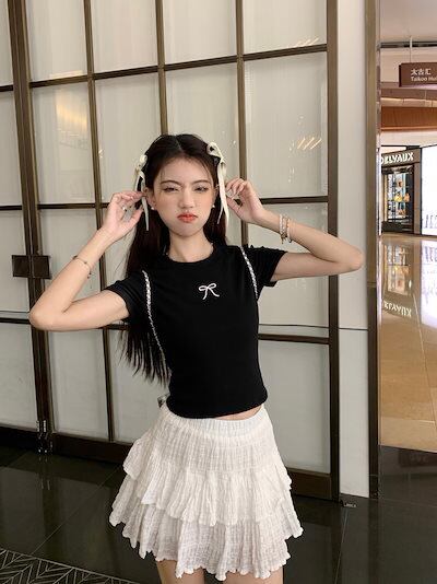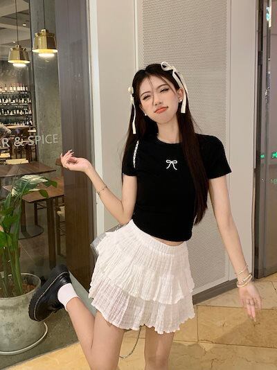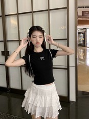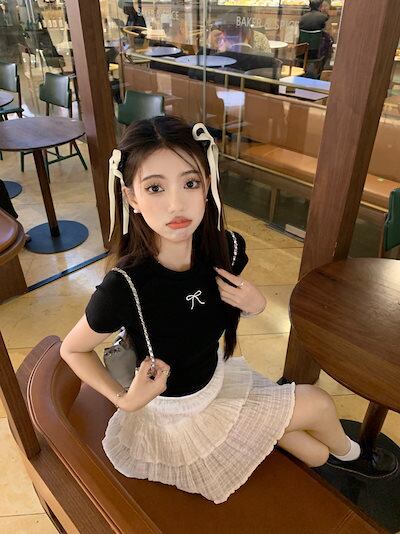 2024 春夏トップス Tシャツ 半袖 ラウンドネック スリム 丈短め ショート イラスト かわいい夏 おしゃれスリーブ カジュアル ファッションレディース 韓国 お出かけT
