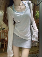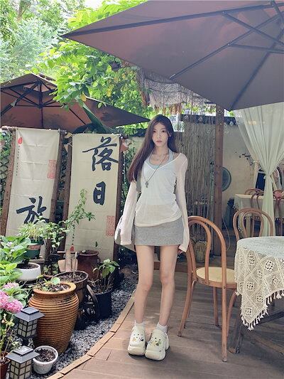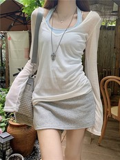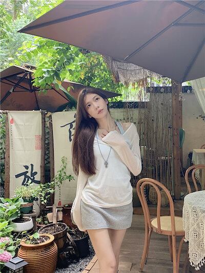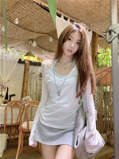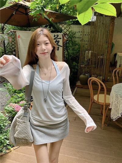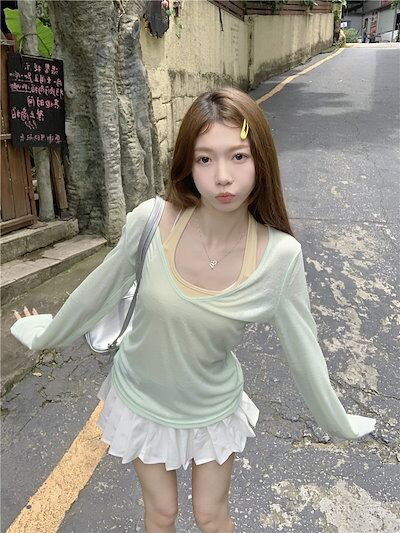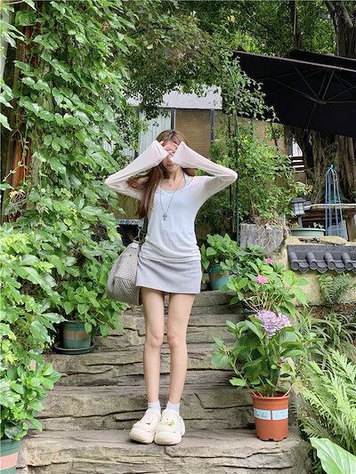 2024 春夏 女度を格上げ tシャツ ファッション トップス ショート丈サイズ 韓国 長袖T薄手 フィット ネックプリント レイヤードT重ね着 肌見せ 女っぽハイフレンチタイトシルエットレディース