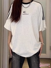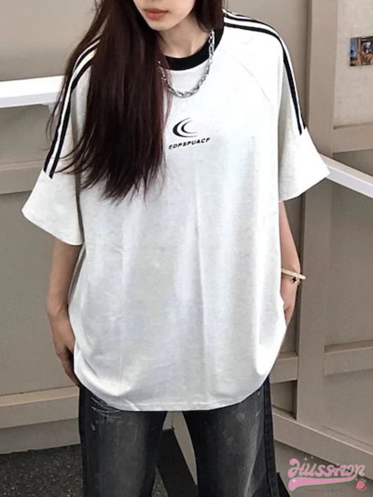 2024夏韓国可愛い風トップス Tシャツ ラウンドネック ゆったり シルエット半袖丈長め赤 白 かわいい カジュアルサイズ加工風 韓国系ファッション レディース お出かけTメンズライク