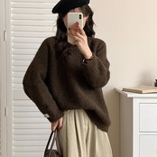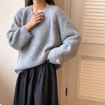 韓国ファッションレディース ニットセーター ゆったりスウェットトップス ニット インナーカシミヤタッチ ベーシックニット