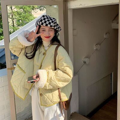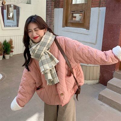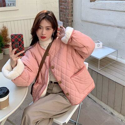 韓国ファッション ショートダウン レディース ダウンコート 中綿 ダウンジャケット アウター Vネック冬アウター
