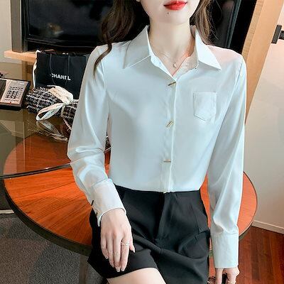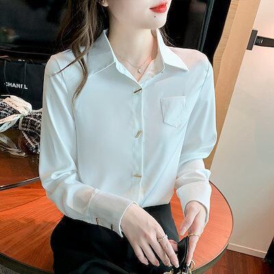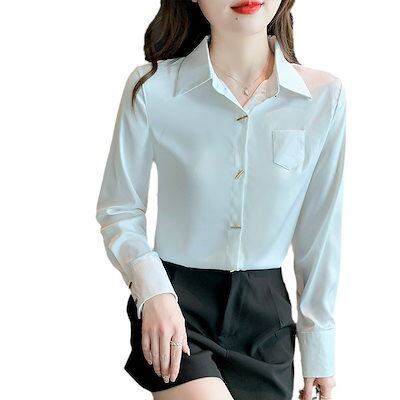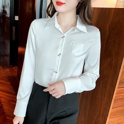 今っぽシアーシャツ レディース 通勤ブラウス 長袖 サテンシャツ着痩せトップス