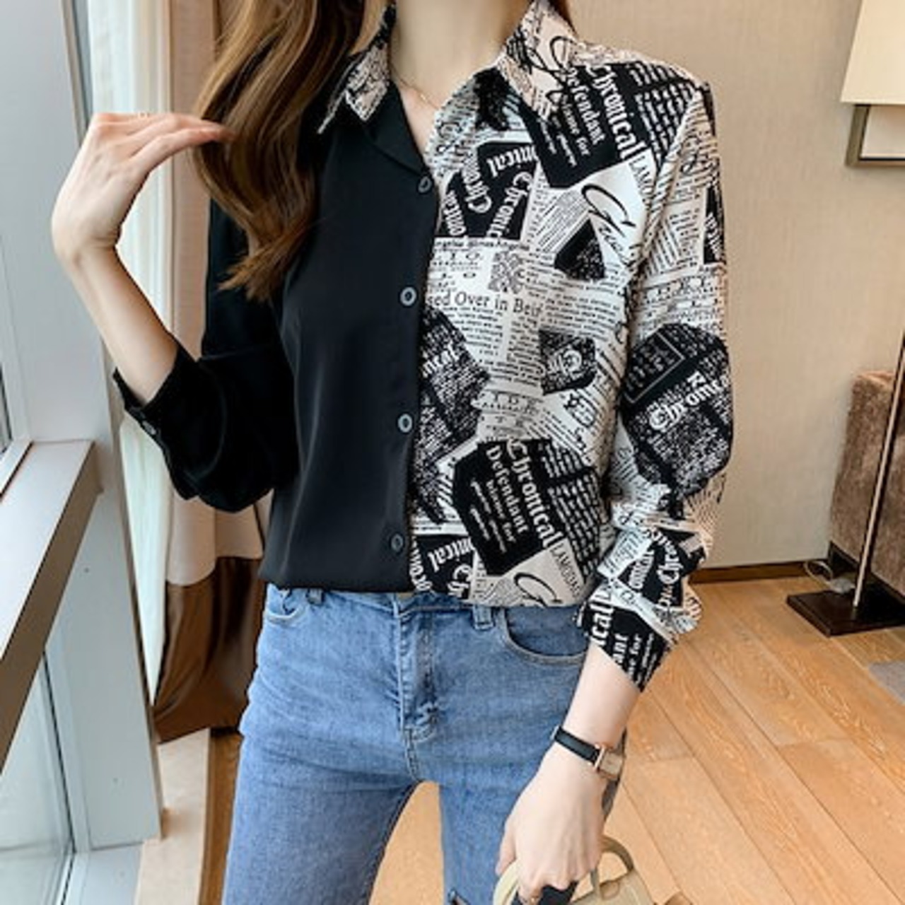 今っぽシアーシャツ レディース ブラウス 切り替え長袖シャツ トップス