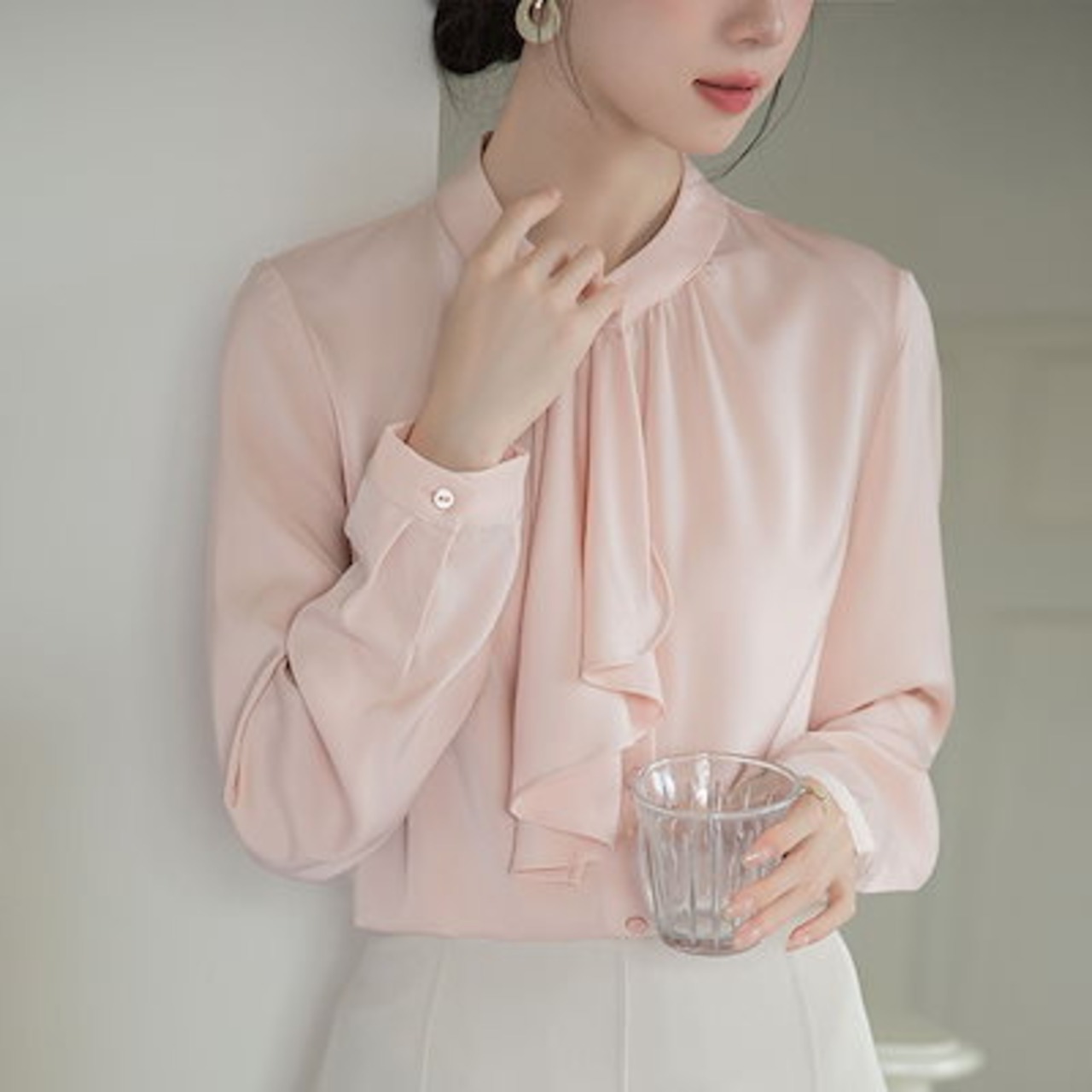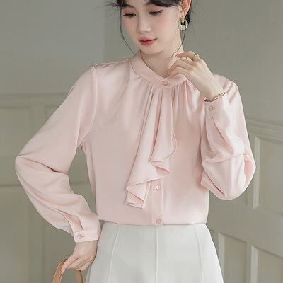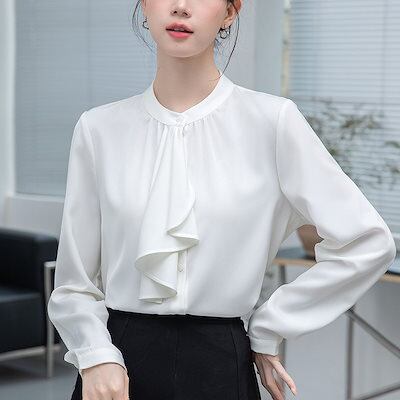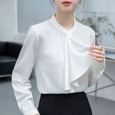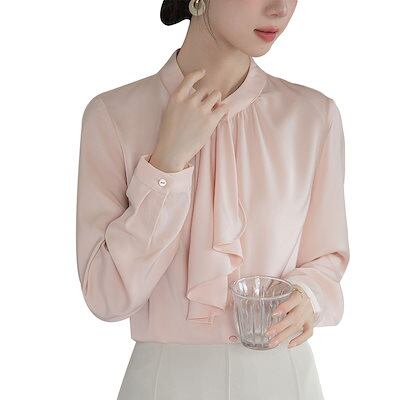 シアーシャツ レディース ブラウス不規則なひらひらベルトシャツレディース秋通勤ブラウス