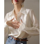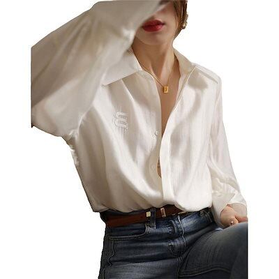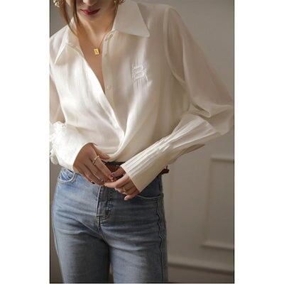今っぽシアーシャツホワイト レディース ブラウス プリーツ韓国ファッション長袖トップスシャツ