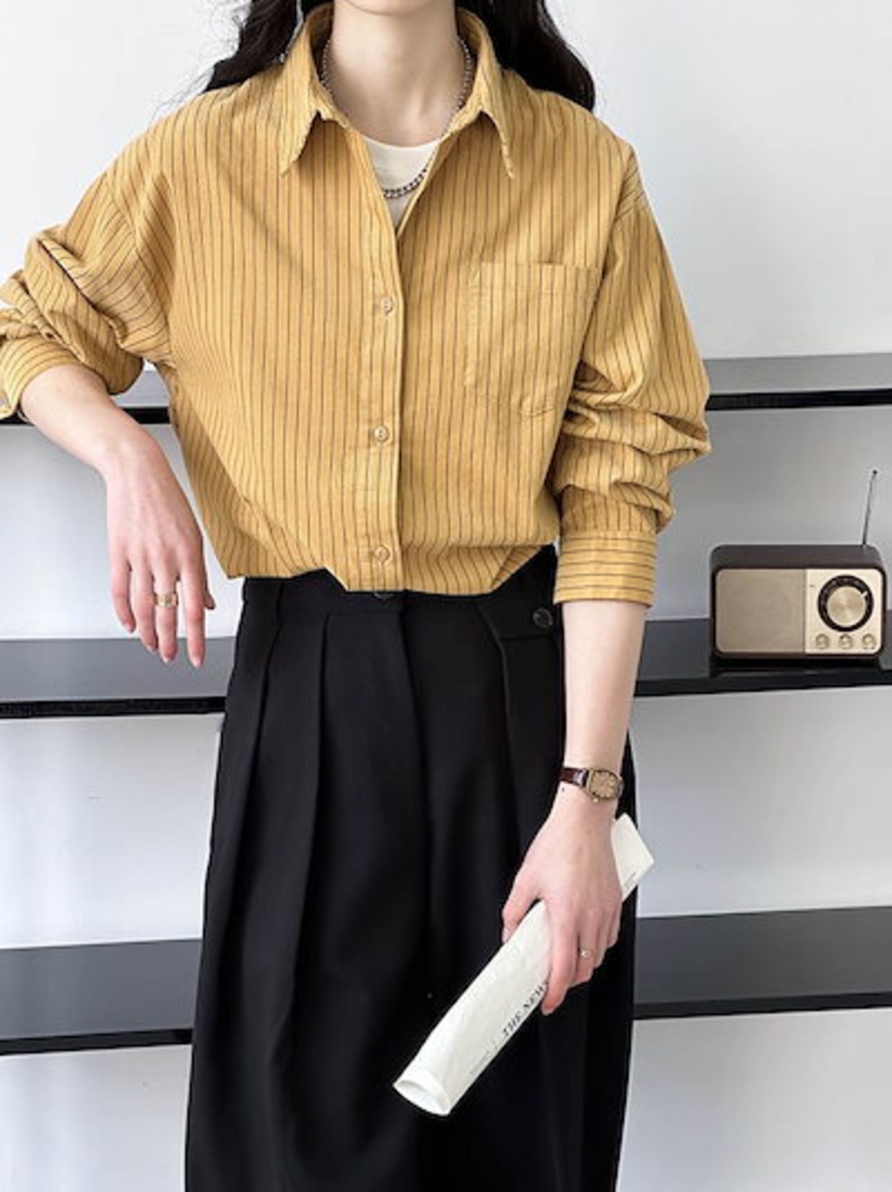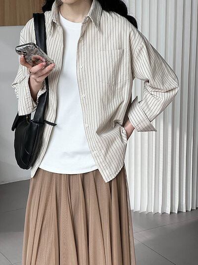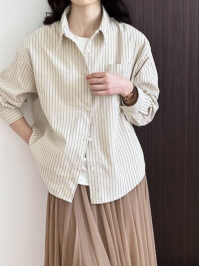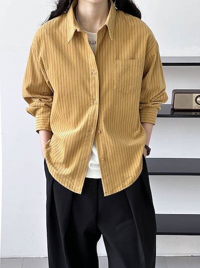今っぽシアーシャツ ゆったりとしたストライプ シャツ 2024年秋新作シャツ レディースブラウス