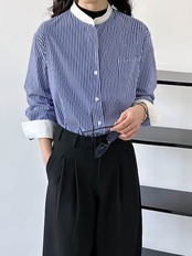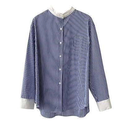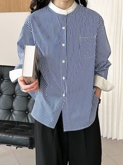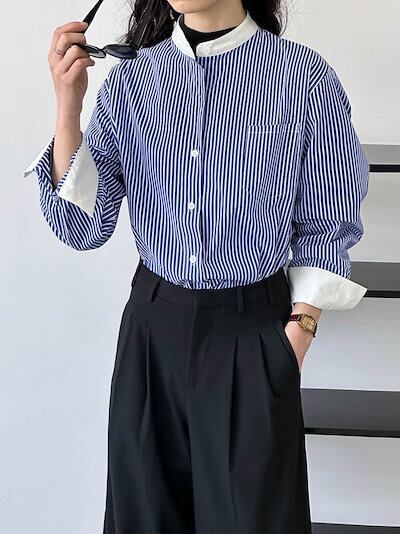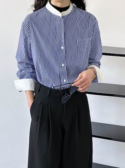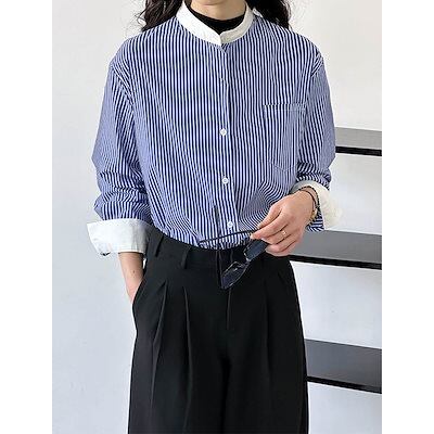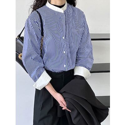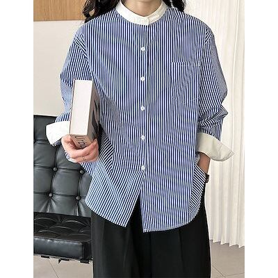 韓国ファッションブルーストライプシャツレディースカジュアルファッションルーズシャツ今っぽシアーシャツ レディースブラウス
