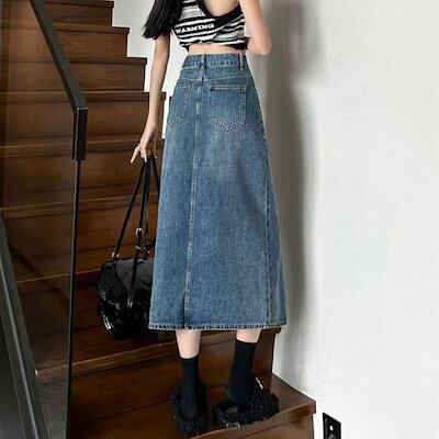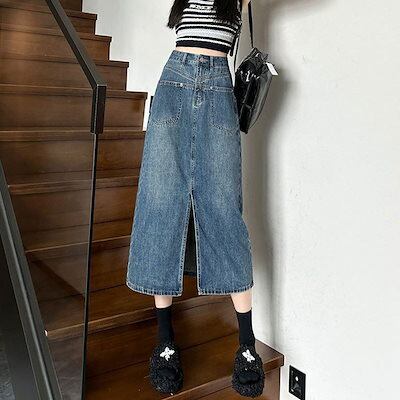 ロングスカート レディース 韓国ファッション かわいいゆったりデニムスカート
