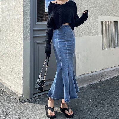 韓国ファッション レディース デニムスカート